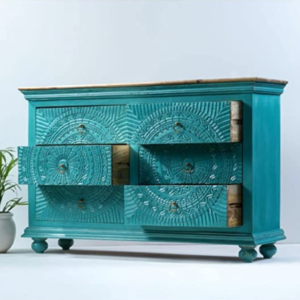 WoodBee Crafts Hand-Carved Blue 6 Drawer Chest