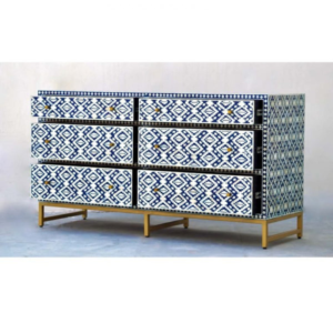 WoodBee Crafts Handmade Bone Inlay Navy Blue Chest of Drawer