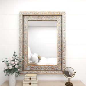 SALE WoodBee Crafts Hand Carved White Wash Mirror