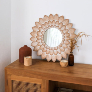 SALE WoodBee Crafts Wooden Hand Carved Mirror Frame – Natural Finish